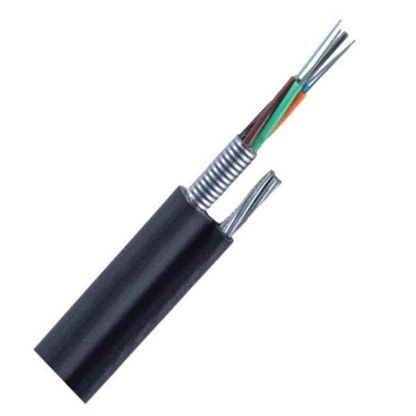 The optical fiber is 250µm, the loose tube is made of high modulus plastic, which is filled with waterproof compound. The center of the cable core is a metal reinforced core, Tubes (and fillers) are stranded around the strength member into a compact and round cable core, which is filled with the waterproofing compound to protect it from water ingress. Plastic coated aluminum tape or steel tape is longitudinally wrapped and extruded into a polyethylene sheath to form a cable.With self-supporting messenger wire.